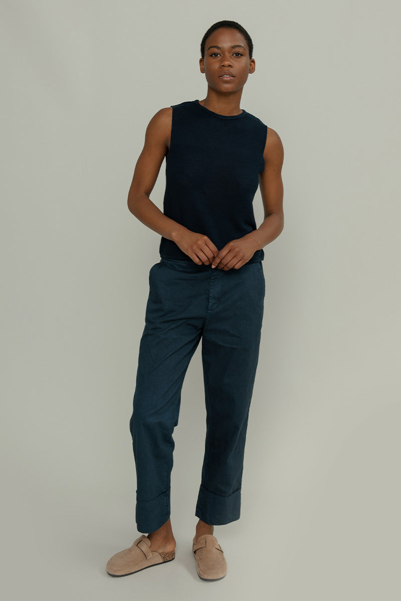 The Alma women's tank top is made of 100% recycled linen, a fresh, breathable and sustainable material. The double-fall links stitch gives lightness without being transparent, while the typical crisp hand of linen gives a natural elegance.