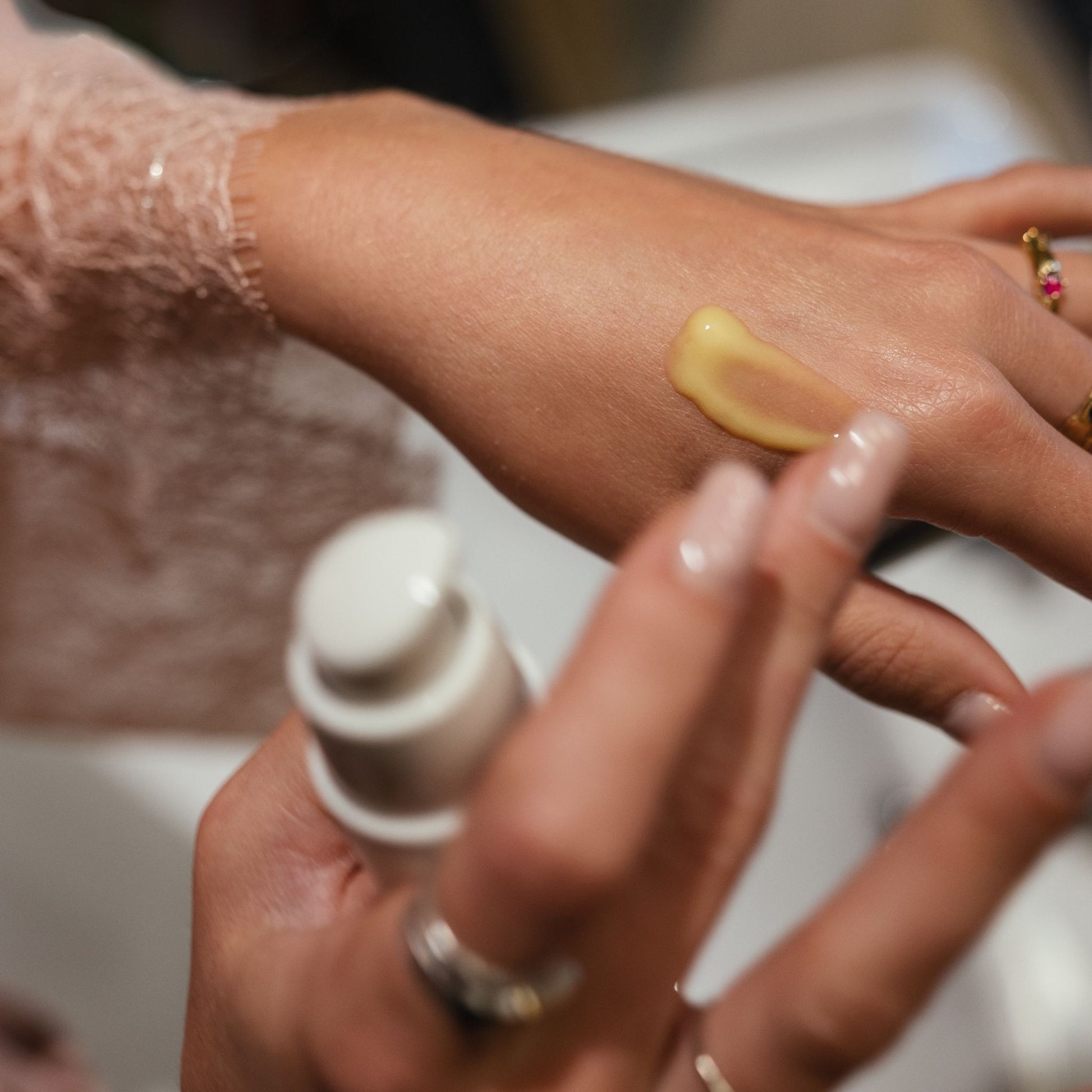 - Apply a small amount of serum with your fingertips to your face and neck.
