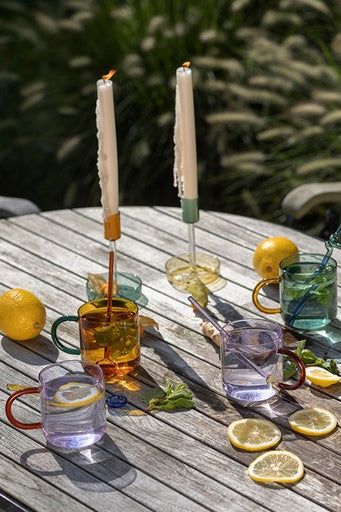 The RAINBOW series of mugs is a real eye-catcher and adds an elegant and colourful touch to your home. Each design has been carefully selected to create a harmonious collection. Whether hot or cold, you can enjoy your drink in this unique mug. It has great potential to become your new favourite piece. Our mugs are made from robust borosilicate glass and are dishwasher and microwave safe.