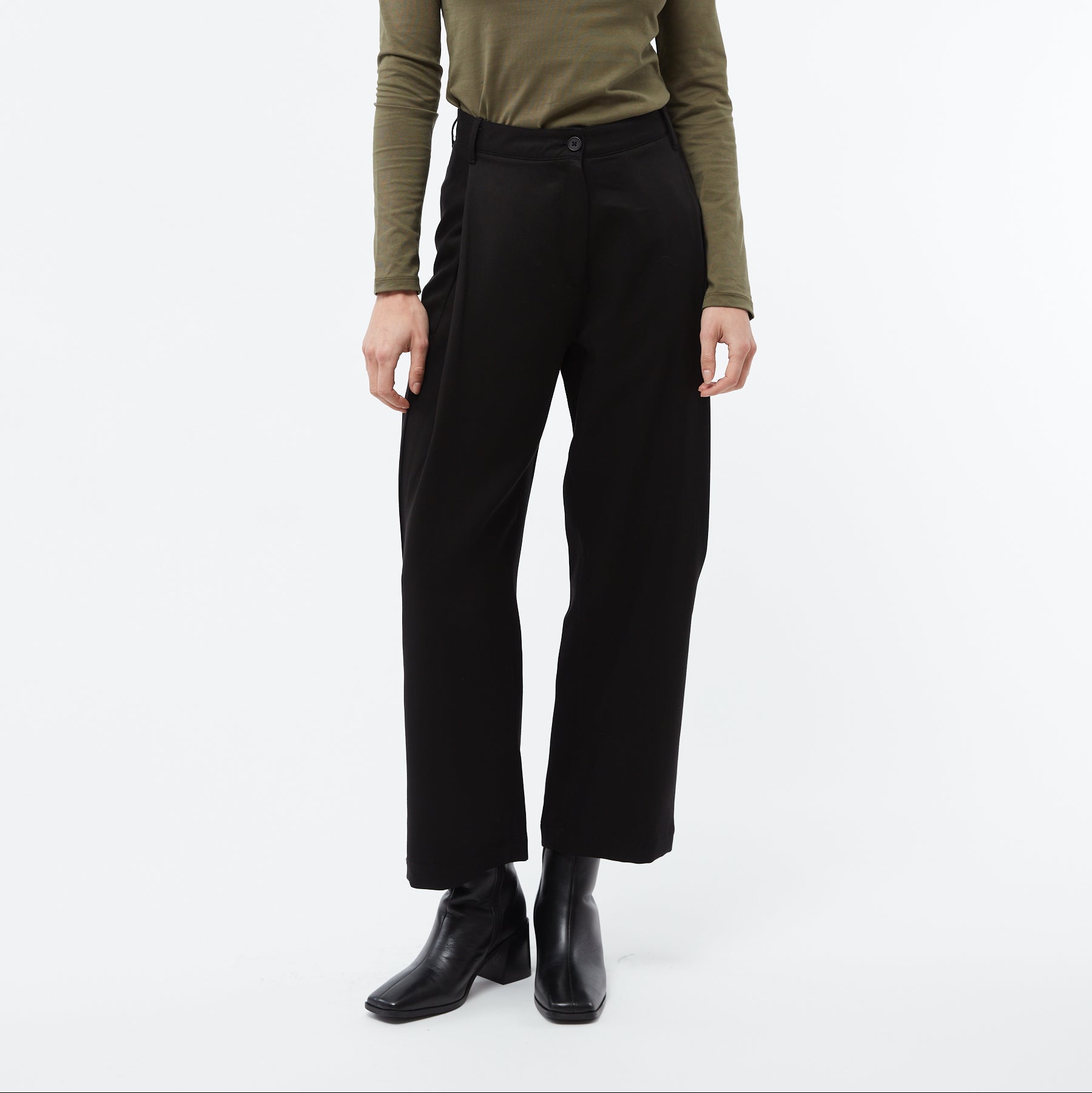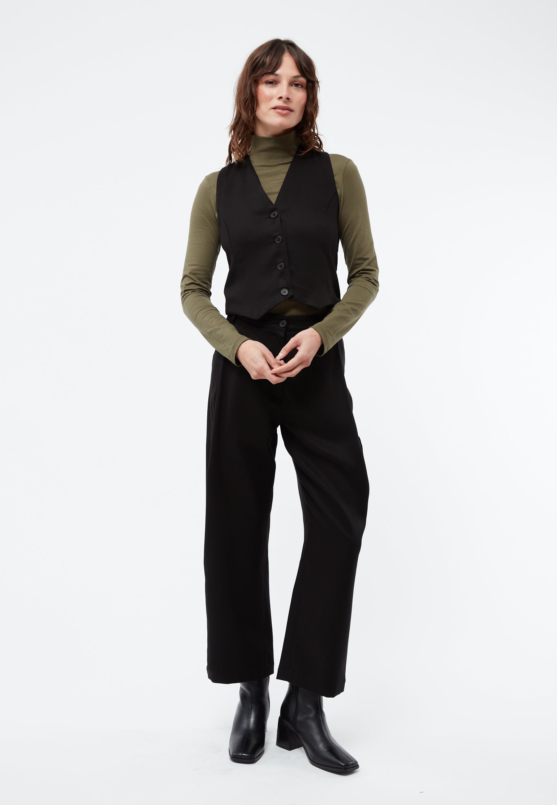 Absolutely stunning pair of pants, a classic piece with a twist. The pockets are hidden under the front pleat, such an interesting design yet timeless and o so flattering at the same time. Made out of a beautiful, heavy tencel fabric. For a verrrrr cool suit look, combine with the matching cropped blazer or with the Alida vest!