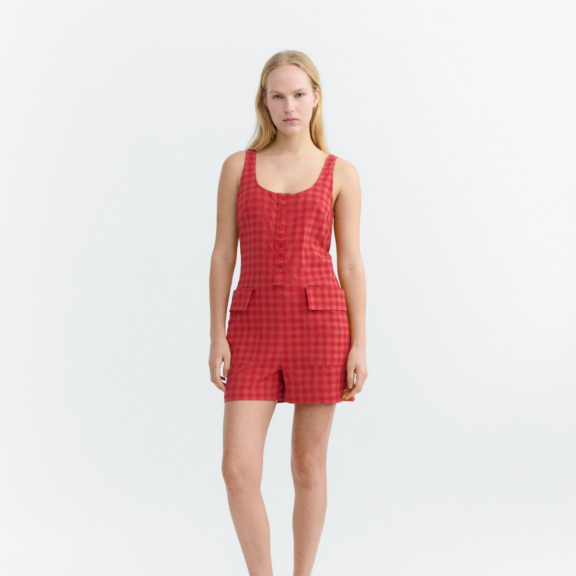 Maud Seersucker Jumpsuit - Red Checks